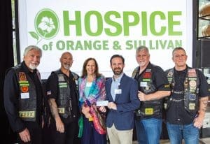 The Nam Knights of America Motorcycle Club Hudson Valley Chapter generously donated $2,500 at Hospice of Orange & Sullivan’s 6th Annual Community Breakfast. Hospice of Orange & Sullivan President & CEO Eric Gatsik is at center.