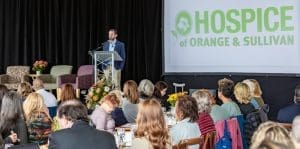 The ”Real Stories, Real Impact” panel discussion was moderated by Eric Gatsik, President and CEO of Hospice of Orange & Sullivan Counties and Heather Bell-Meyer, President and CEO of the Orange County Chamber of Commerce. About 115 attendees at the Barn at Villa Venezia connected, reflected and were inspired by stories of love, dignity and trust offered to patients at the end of their lives.
